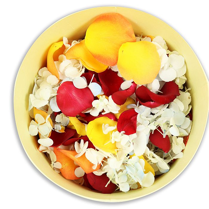Introducing a truly luxurious bouquet that celebrates the art of nature. Our arrangement is a delicate fusion of Hydrangea, Rose, and Chrysanthemum petals, each chosen at the peak of their season. With every petal hand-selected for its freshness and vibrancy, this bouquet stands as a beacon of exquisite design and heartfelt sentiment. The interplay of bold colors and subtle shades creates an ambiance of refined elegance, perfect for commemorating life’s most precious moments.