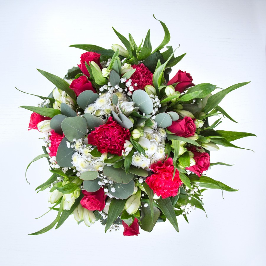 Stunning Red Roses & White Blooms